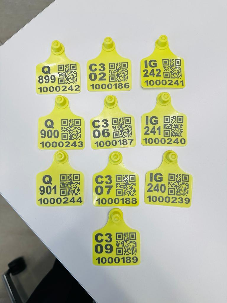 With your farm name, barcode or qr code for identification. Any series number can be printed.